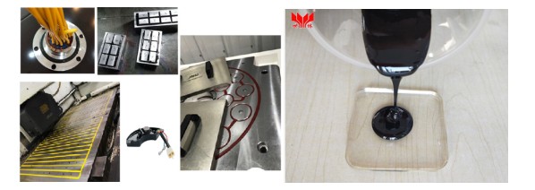 適合大體積電子、電器產(chǎn)品的絕緣灌封,由于這款膠水在室溫下固化十分緩慢,因此對于深度較深的電子元器件很合適,如果您擔(dān)心灌封時(shí)有氣泡產(chǎn)生,可以采用先將A組份膠水加熱80℃兩小時(shí)后再進(jìn)行調(diào)配使用。