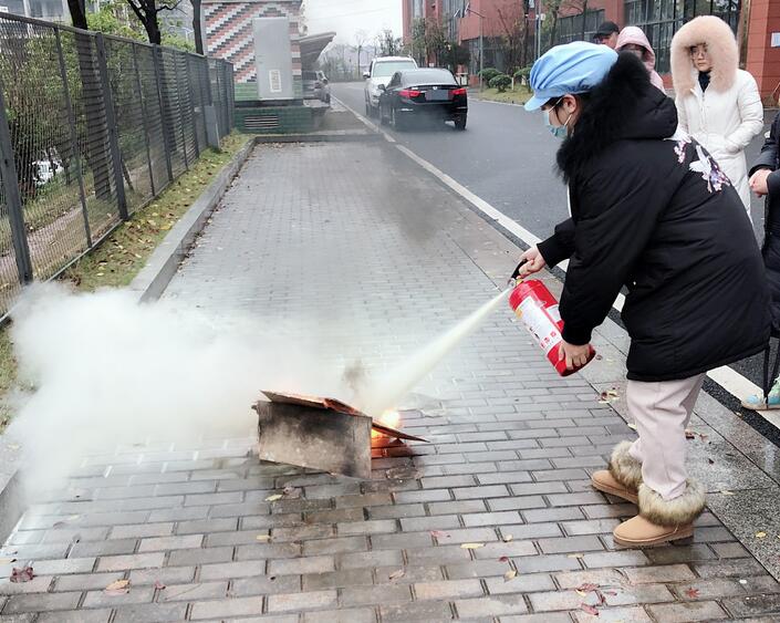 隨后,所有員工在園區(qū)空曠區(qū)域進(jìn)行了滅火器、滅火毯使用的實際操作,保證每一位員工都會、都能在緊急情況下使用這兩種滅火器材。