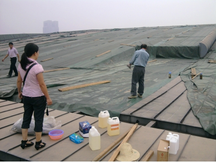 世林牌號為SL3431的透明改性環(huán)氧膠,適用于帆布、塑料、金屬、陶瓷等的膠接,對鈦合金與帆布粘接可以起到很好的效果。湖南會展中心的頂樓防水工程,采用經(jīng)濟(jì)實(shí)惠的方法在鈦合金頂棚的框架上粘上一層防水篷布,以達(dá)到防水的作用。