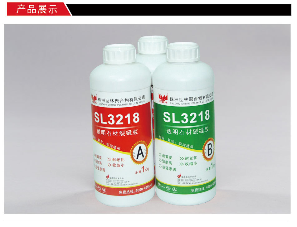 我們對(duì)這兩款石材裂縫修補(bǔ)膠該如何選擇呢?一般我們建議還是采用環(huán)氧樹脂類型的,這種膠雖然固化速度為25℃需要24小時(shí),但是由于強(qiáng)度高,有一定的韌性,耐打磨性能突出,所以做出的石材檔次高,尤其是淺色系列的石材,現(xiàn)在多用SL3218石材裂縫修補(bǔ)膠。這種膠透明度很好,耐黃變性能優(yōu)異,也受到很多大的出口大板廠商青睞。